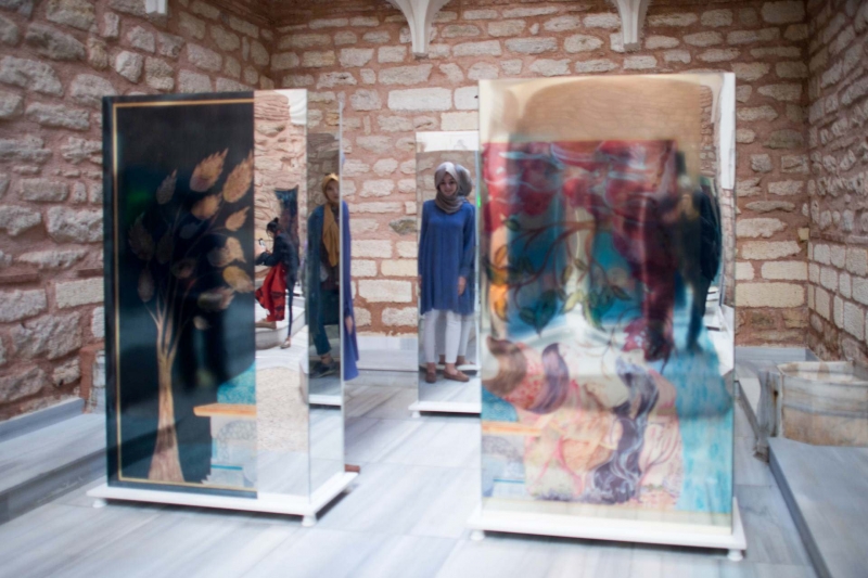 Fatih Sultan Mehmet Vakıf Üniversitesi minyatür atölyesi hocalarının ve öğrencilerinin enstalasyon çalışmaları “Yeditepe Bienali” kapsamında Küçük Mustafa Paşa Hamamı’nda sergileniyor.